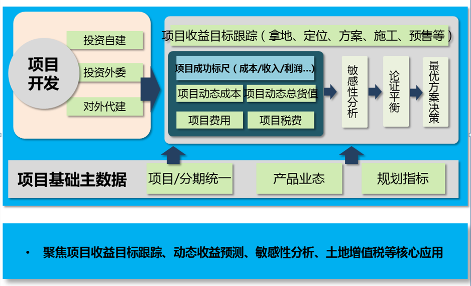 实现对项目不同阶段(拿地、启动会、方案设计等)目标收益测算&管理,有效反应目标收益状态&发展趋势。