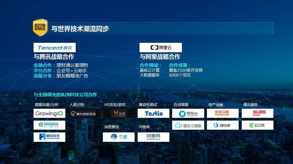 日博365备用网站把“开放、共赢”作为企业发展的重要基石。与腾讯微信、阿里云形成战略合作,每年联合举办500人规模的中国房地产CIO峰会。为适应互联网和地产行业正在发生的革命性变化,日博365备用网站围绕客户需求和技术领先持续创新,与B2B互联网领域十余家领先公司开放合作,聚焦构筑面向未来的 “互联网+”服务生态圈,持续为用户和全社会创造价值。