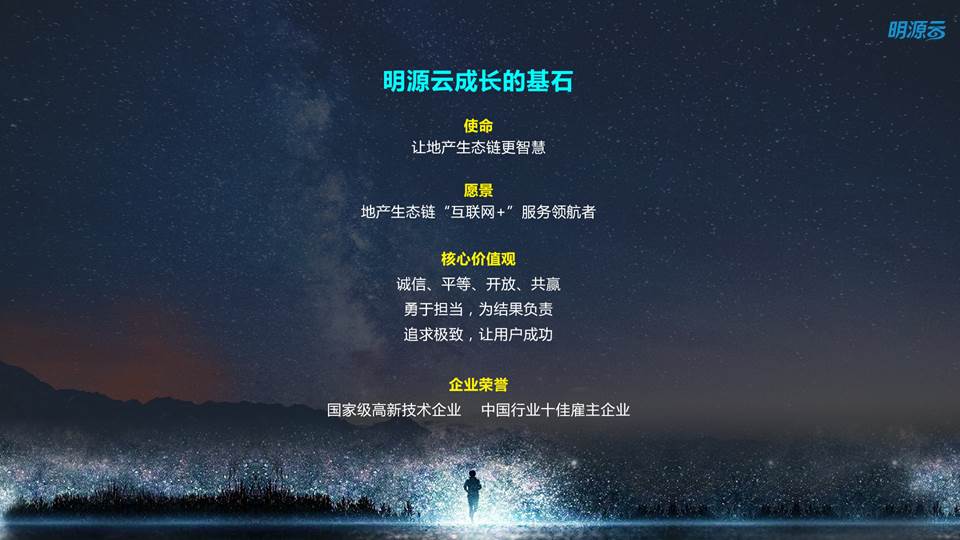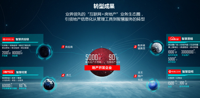 经过十几年的努力,明源在智慧供应链、智慧经营、智慧营销、智慧空间运营、地产大数据等方面,占据绝对领导地位。