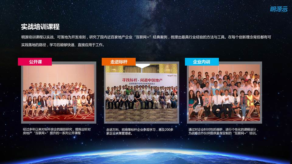 日博365备用网站还搭建了地产界最强的“互联网+”的专业研究与学习平台。明源地产研究院通过自家微信大号连接50+万地产管理中高层,每年出版多本“房地产+互联网”的书籍和研究报告,还开设数门专业培训课程。