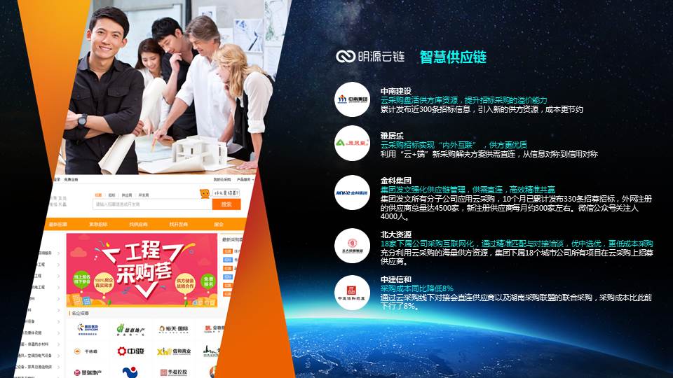 云链致力于通过领先的移动互联网+大数据技术,让地产供应链的上下游各方及业务场景在线化,通过在线来提升上下游的协同效率,并运用先进的大数据算法为各方赋能,最终让房企的采购更智慧、工程管理更智慧、服务更智慧。
